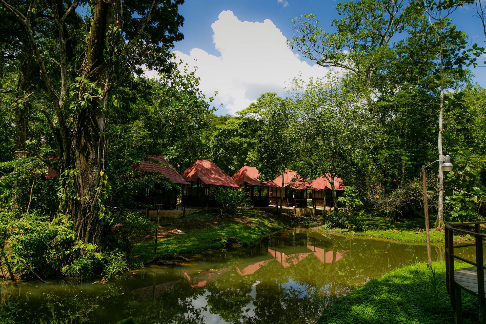 Contamos con 4 secciones de cabañas, contando con cabañas con baño privado y cabañas compartidas mixtas con baño compartido. Todas las cabañas ofrecen vista a los jardines, con servicio de recepción las 24 horas, área de fogata, alberca, área de hamacas, Spa, Wifi gratis, Restaurante «La Reina Roja», lavandería y área de camping.