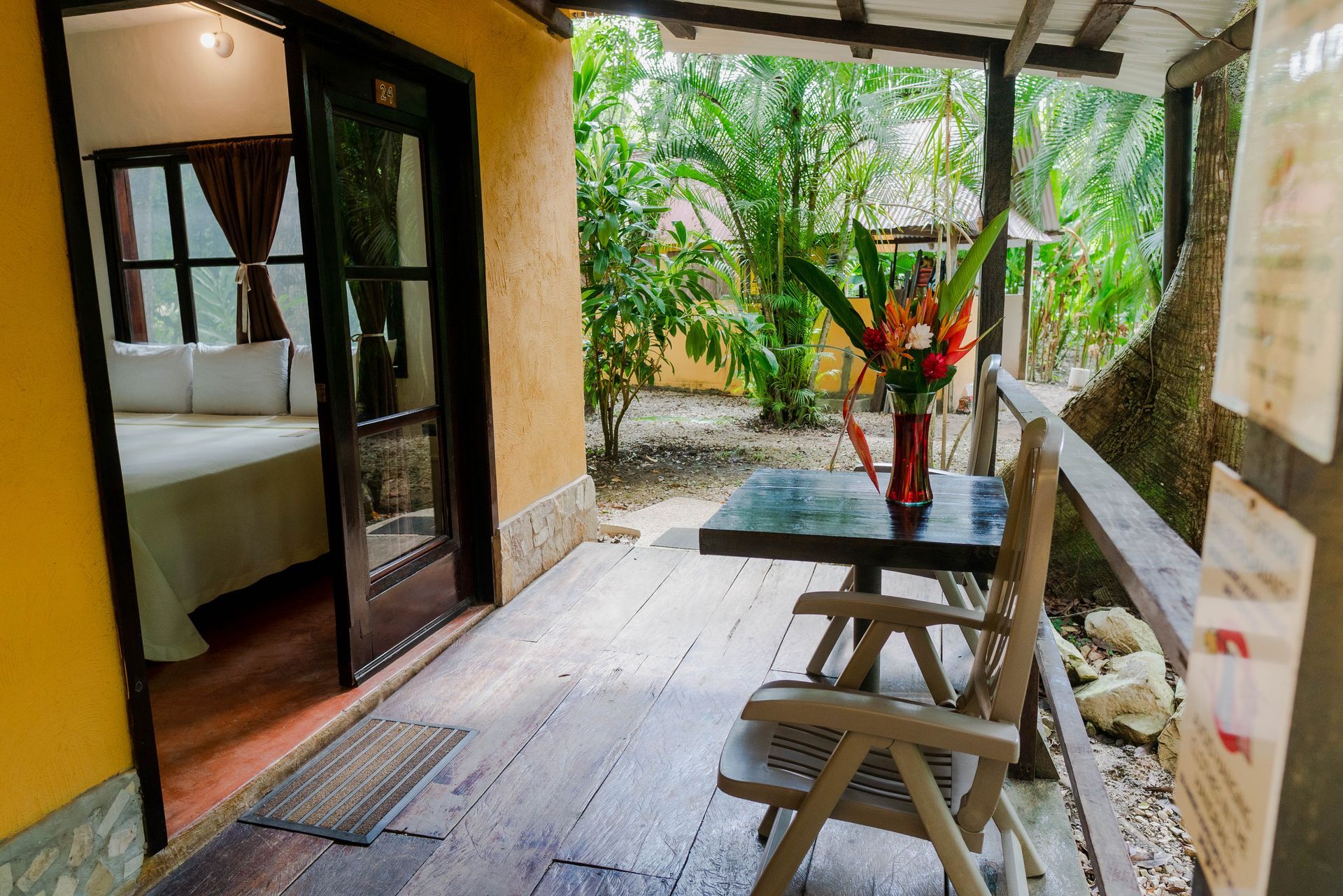 Detalles: Equipadas con ventilador, botella de agua, jabón y toalla, con vista a la alberca, el baño es COMPARTIDO ubicado en el exterior, se comparte con otras cabañas del mismo tipo.
